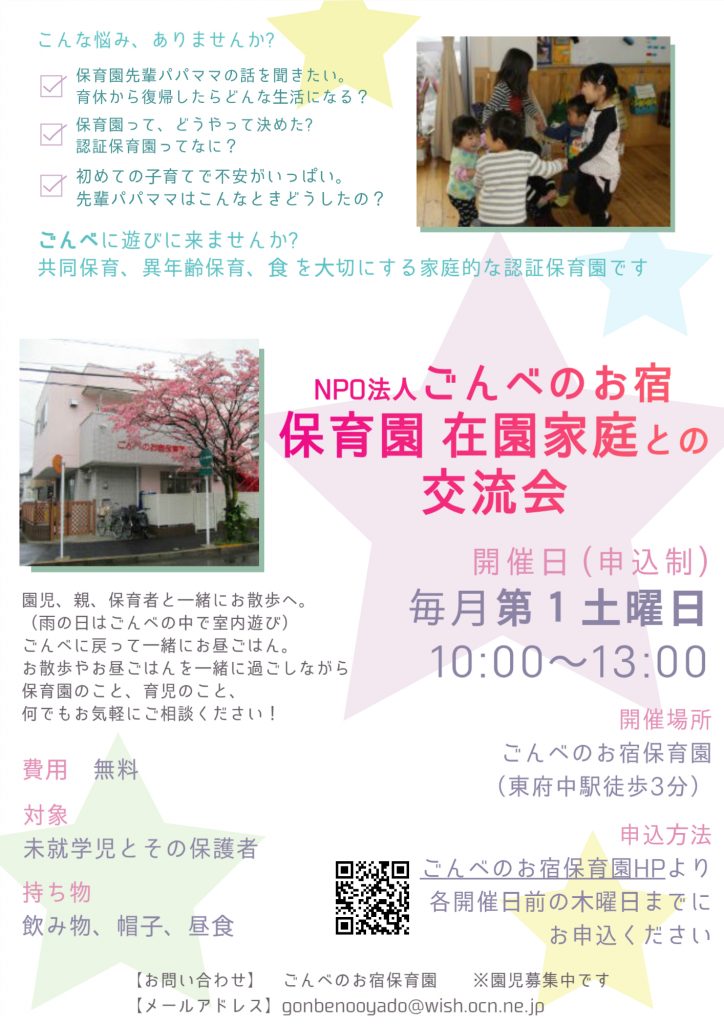 【ご案内】毎月第1土曜日 保育園在園家庭との交流会 を開催します